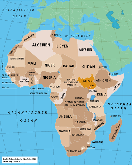 Rund 7,1 Millionen Menschen im Südsudan benötigen laut Uno notfallmässige Unterstützung in den Bereichen Lebensmittelversorgung und Landwirtschaft. Geschätzte 1,1 Millionen Kinder unter fünf Jahren sind von akuter Fehlernährung bedroht, mehr als 260 000 sind bereits schwer unterernährt. Die Dauerkonflikte sind für die landwirtschaftliche Produktion verheerend. Überdies bringen die galoppierende Inflation und der Zusammenbruch der Märkte jene Regionen in Bedrängnis, die zur Befriedigung ihrer Ernährungsbedürfnisse davon abhingen. Der eingeschränkte Zugang zu Gesundheitsdiensten sowie fehlende sanitäre Anlagen verschlimmern die Situation. Dazu kommen die Bevölkerungsbewegungen: Das Land zählt 1,84 Millionen intern Vertriebene sowie 2,5 Millionen in die Nachbarländer Äthiopien, Kenia, Uganda, Sudan, DR Kongo und Zentralafrikanische Republik Geflüchtete.