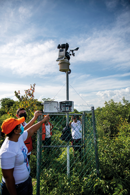 Eliecer Cruz diktiert Daten aus der Wetterstation: «Temperatur 32 Grad, leichte Brise aus Westen, Luftfeuchtigkeit 90 Prozent.» Die Wetterstation ist vom Schweizerischen Roten Kreuz (SRK) finanziert und liegt auf einer Anhöhe im Weiler Nueva Esperanza im Süden von Honduras. Der Blick von oben ist atemberaubend: Grüne Hügel bis zum Horizont, klare Bergflüsse, dazwischen Maisfelder und ein paar Höfe. Aus der Ferne hört man Hühnergackern. Doch die Idylle trügt: Nueva Esperanza ist ein bitterarmes Bauerndorf. Für die 10 Kilometer bis zur nächsten geteerten Landstrasse braucht man im Geländewagen eine Dreiviertelstunde. Die nächste Schule ist 20 Minuten zu Fuss, die nächste Gesundheitsstation 30 Minuten mit dem Moped entfernt. Die Menschen leben in einfachen Häusern mit Aussenküchen und Latrinen. Das Wasser stammt aus Brunnen. Obwohl sie so einfach leben und nur wenig CO2 verursachen, sind sie stark gefährdet durch den Klimawandel. Nueva Esperanza ist auf den Karten des honduranischen Katastrophenschutzes tiefrot gefärbt.